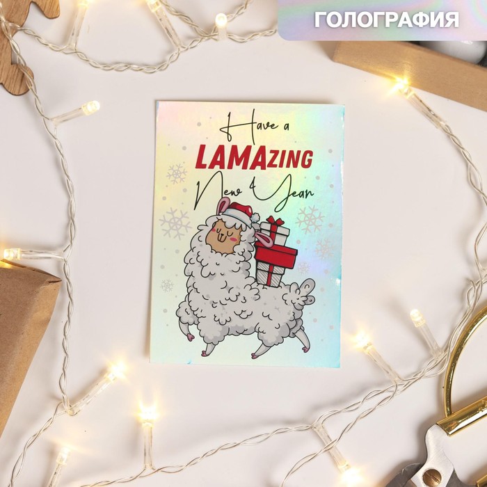 Открытка с новым годом, с голографией «Лама», 7,5 х 10 см — Характеристики