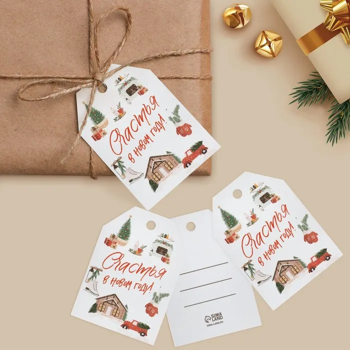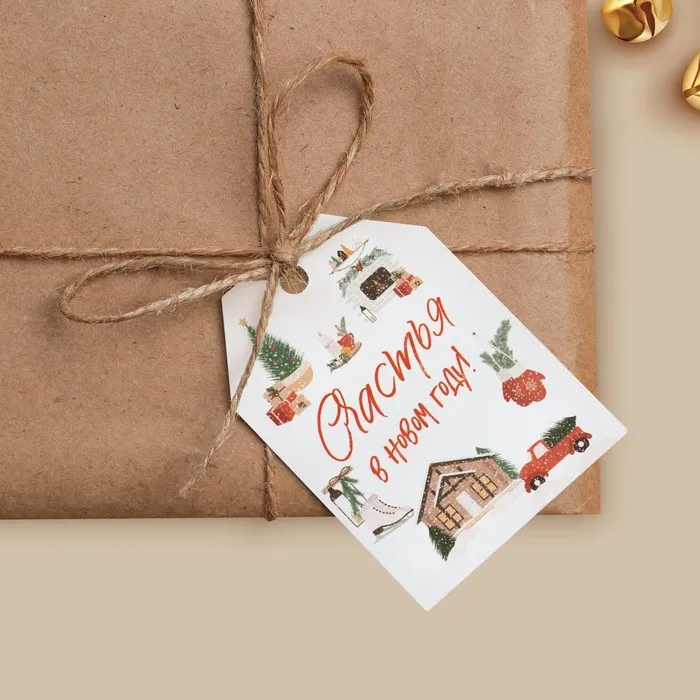 Открытка-шильдик на подарок «Счастья в Новом году», акварельный картон, 5 х 7 см — Характеристики