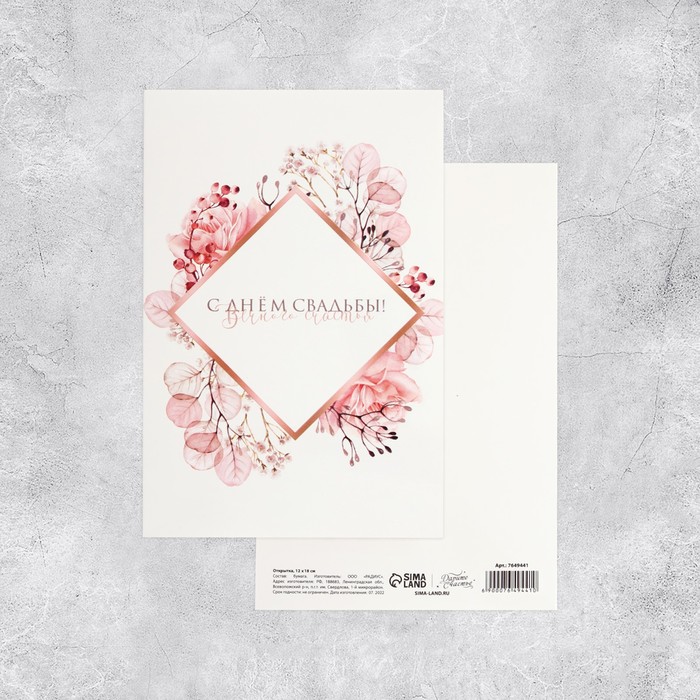 Открытка средняя «Свадебная», 12×18 см — Характеристики
