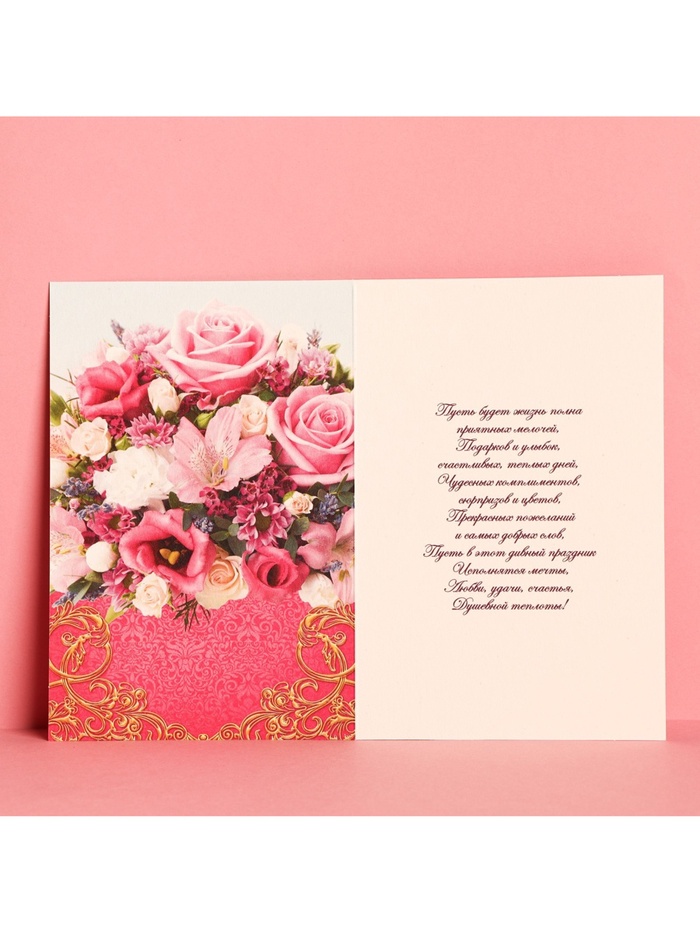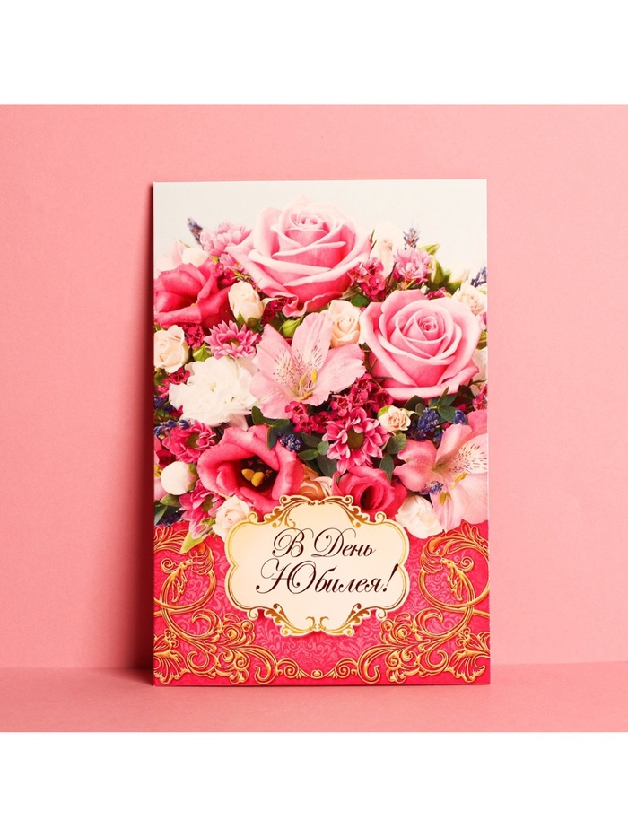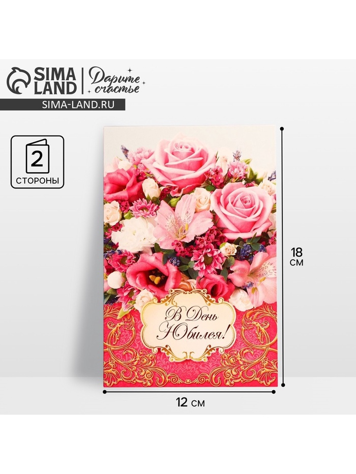 Атмосферу праздника создают детали: свечи, цветы, бокалы, воздушные шары и поздравительные открытки — яркие и весёлые, романтичные и нежные, милые и трогательные. Расскажите о своих чувствах дорогому для вас человеку, поделитесь радостью с близкими и друзьями. Открытка «В день юбилея» букет из роз, 12 × 18 см с креативным дизайном вам в этом поможет.