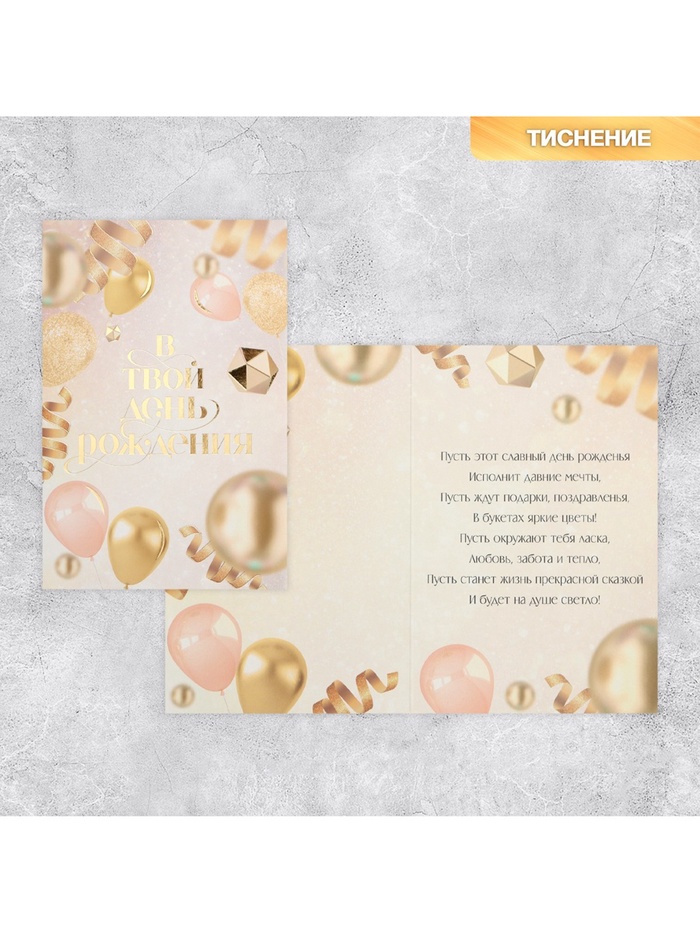 Открытка «В твой день рождения», тиснение, 18×12 см — Характеристики