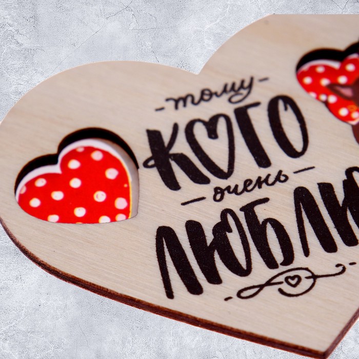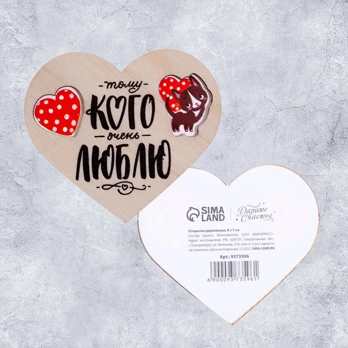 Открытка-валентинка деревянная «Тому, кого очень люблю», котик 8 × 7 см — Характеристики