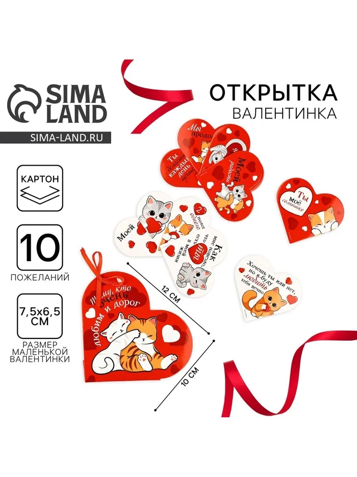 Открытка валентинка на 14 февраля «Тому, кто дорог», 10 шт, 12 х 10 см — Характеристики