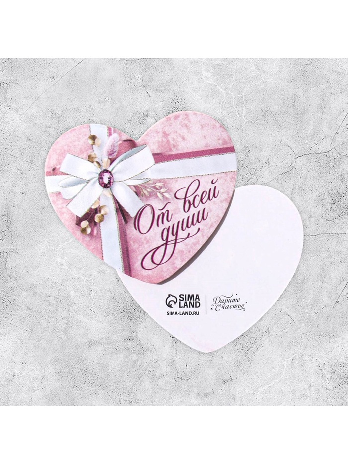 Открытка-валентинка «От всей души», 14 февраля, бант, 7.1×6.1 см — Характеристики