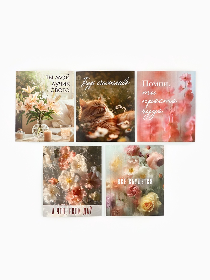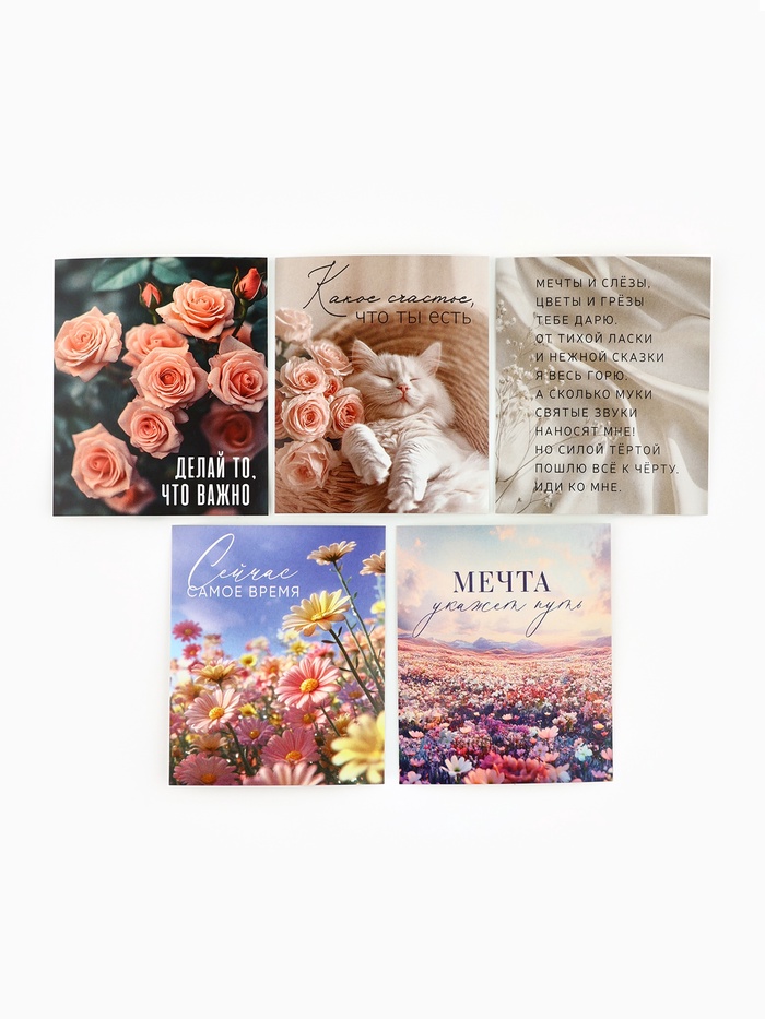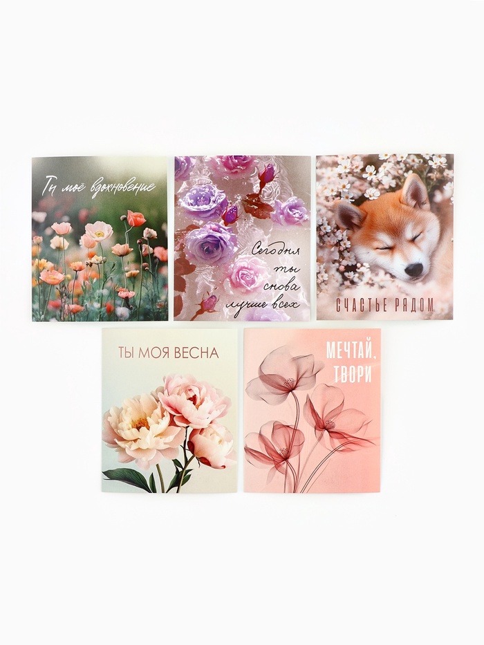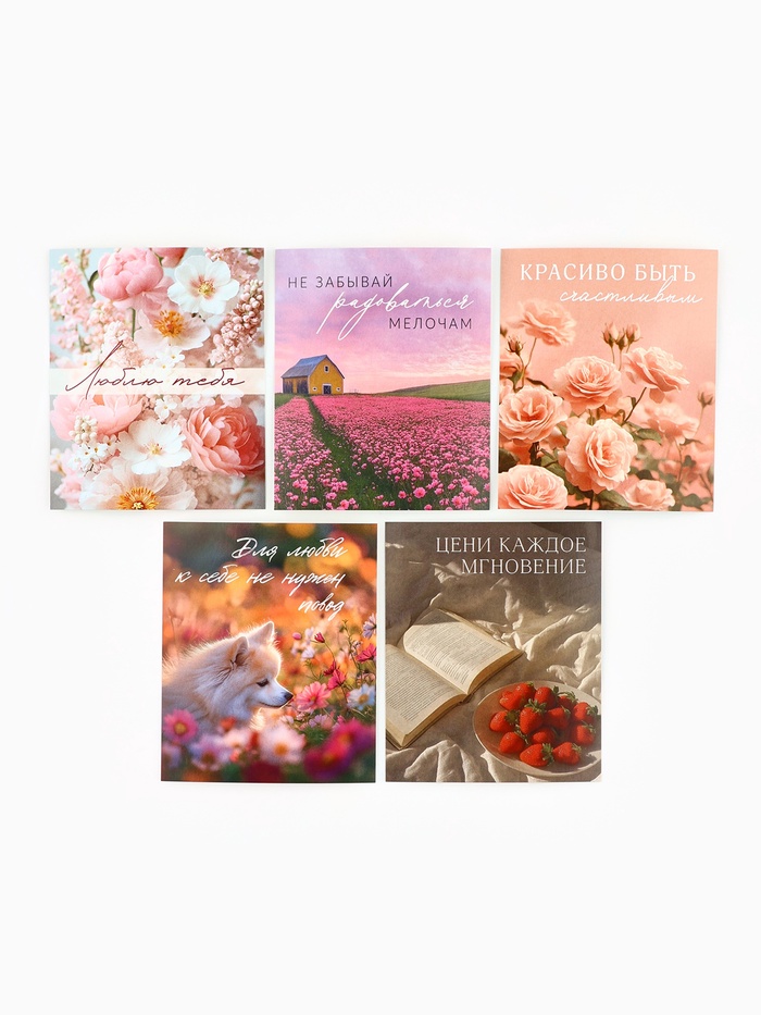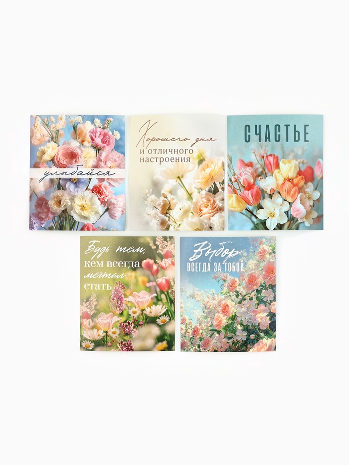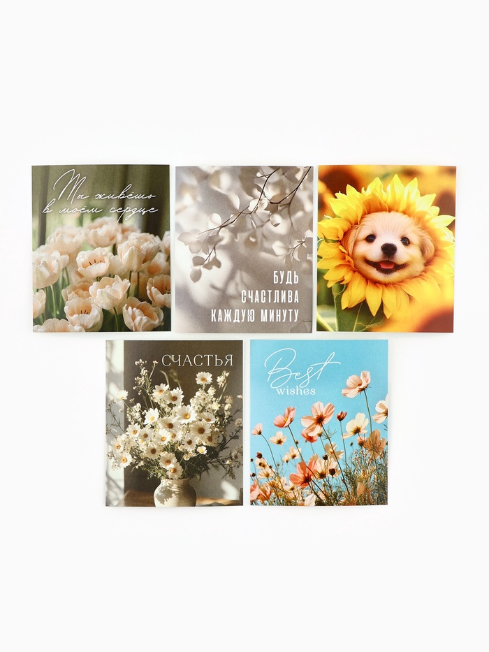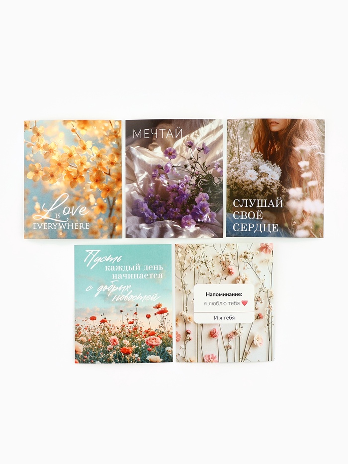 Открытки-мини в коробке со скрепками «Цветы», набор 35 штук, 8×10 см — Характеристики