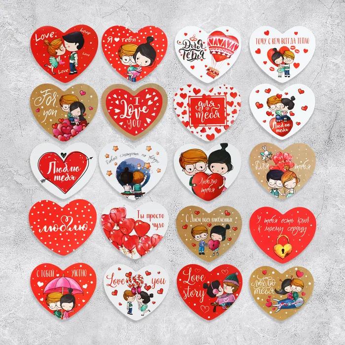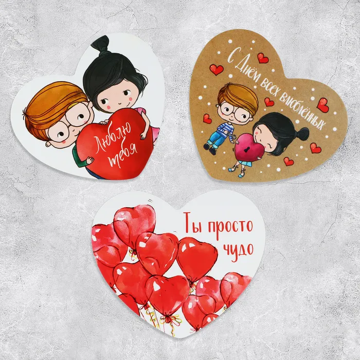 Открытки-валентинки МИКС «Любовные истории», 7 х 6 см — Характеристики