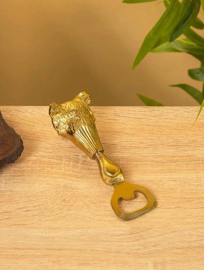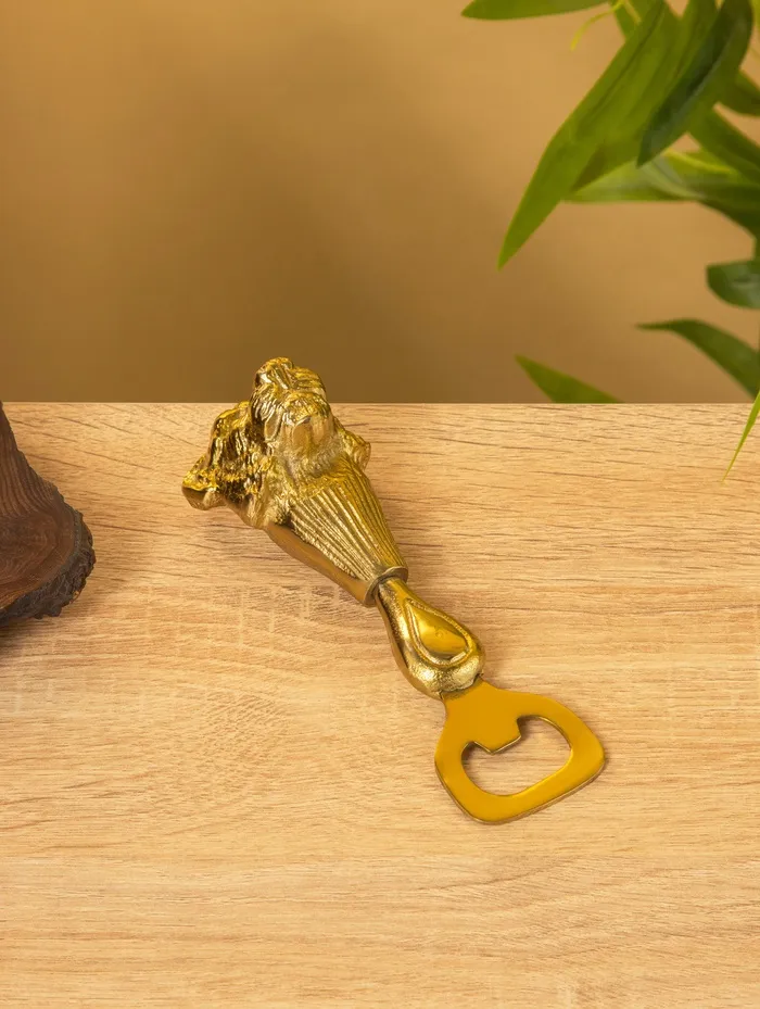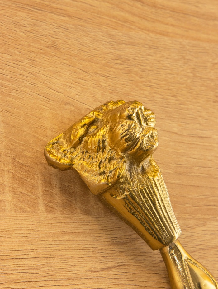 Золотистая открывашка «Лев» из алюминия — стильный и надежный инструмент для вашей кухни или бара. Компактный размер (5×5×14 см) и прочный материал делают её удобной в использовании и хранении. Декоративный элемент в виде льва добавляет изысканности, превращая простой аксессуар в элегантную деталь интерьера. Только ручная мойка — сохраняйте презентабельный вид.