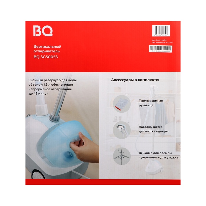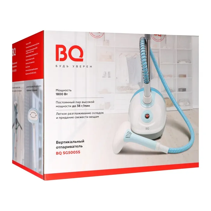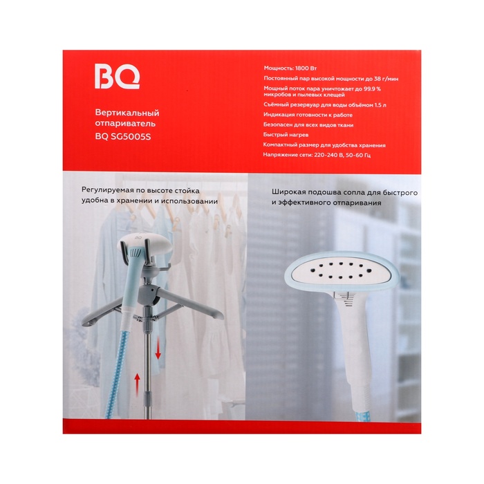 Отпариватель BQ SG5005S, напольный, 1800 Вт, 1500 мл, 38 г/мин, бело-голубой — Характеристики