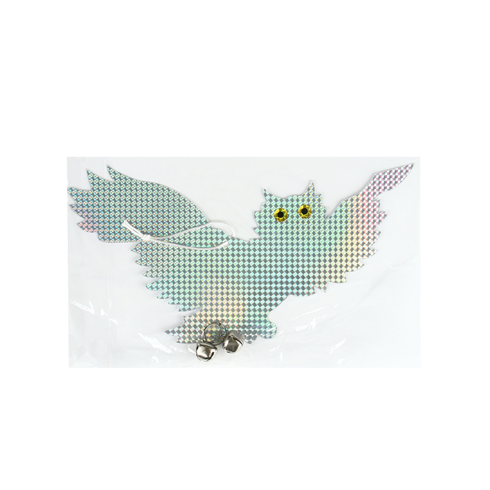 Светоотражающий отпугиватель «Сова с колокольчиком» — это подвесная отражающая пластина для защиты урожая и территории от птиц. Комбинация визуального образа хищника создаёт эффект присутствия угрозы, отпугивая пернатых вредителей.