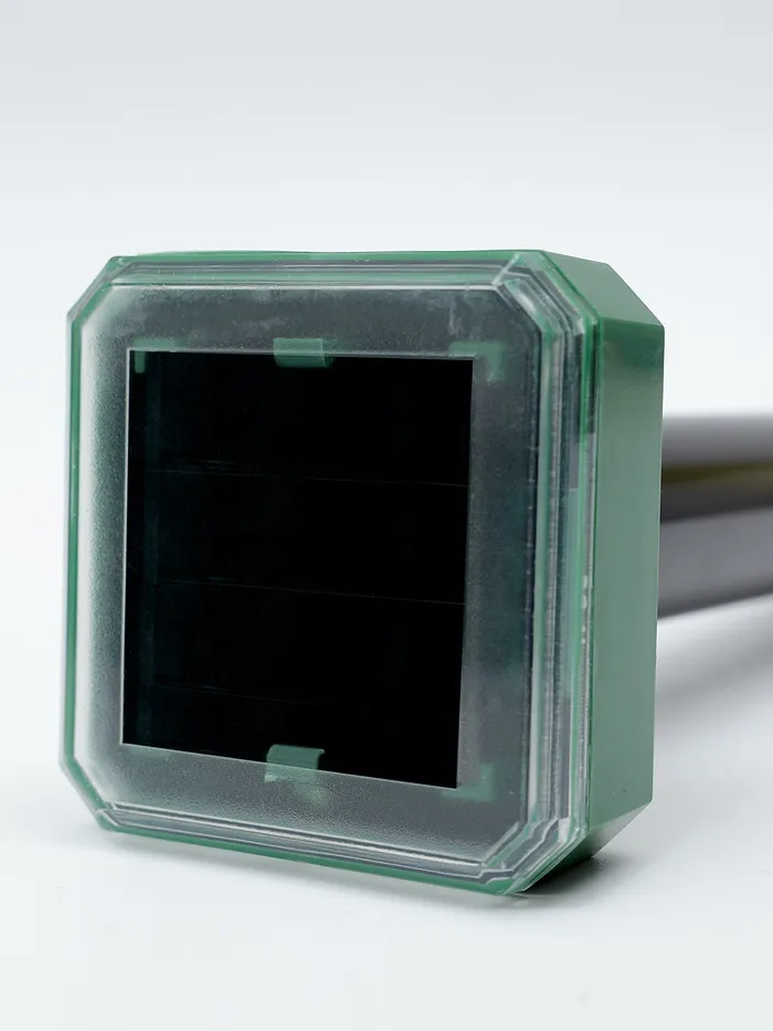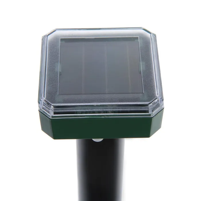 К преимуществам отпугивателя можно отнести его экологичность и безопасность, а также простое управление. Установите отпугиватель в землю на открытой территории, освещаемой солнечными лучами (работает от солнечной батареи). Отпугиватель будет эффективен на площади до 800 м2. Рекомендуем использовать несколько отпугивателей на участке, чтобы увеличить эффективность.