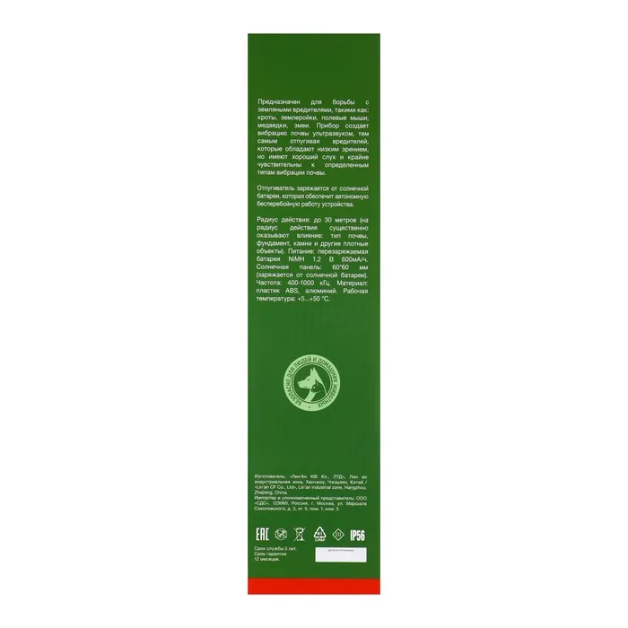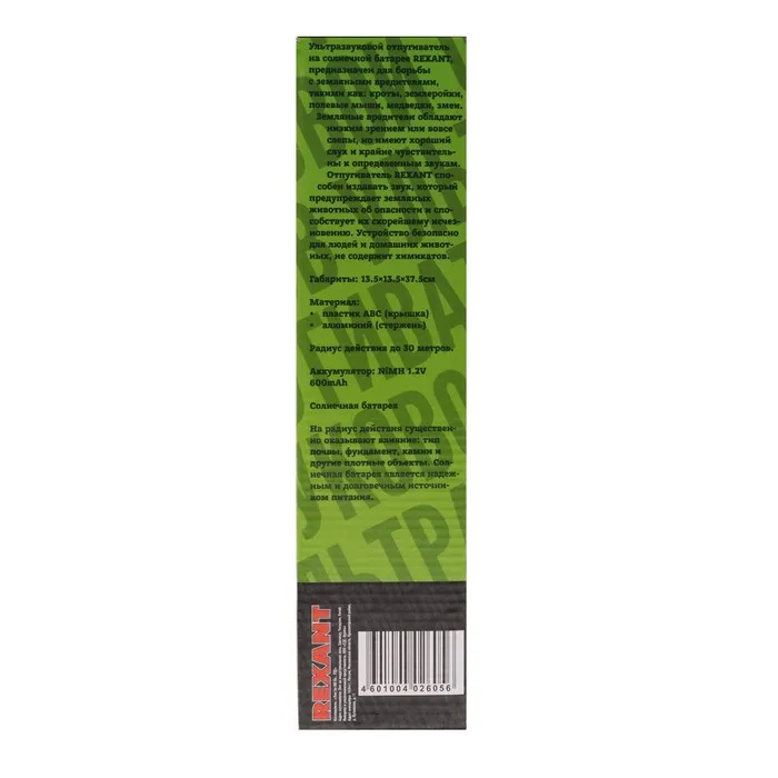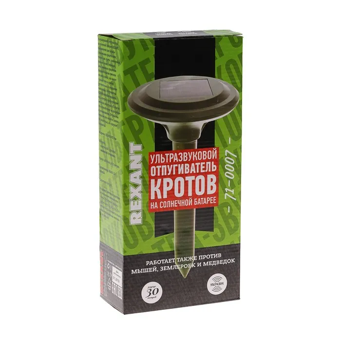 Отпугиватель кротов Rexant 71-0007, ультразвуковой, на солнечной батарее, 30 м — Характеристики