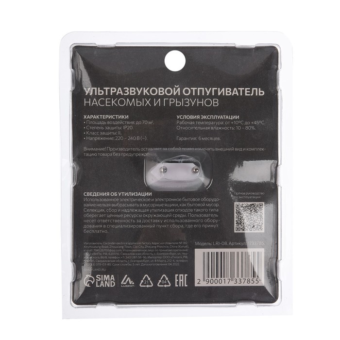 Устали бороться с комарами, мухами и другими насекомыми? Хотите избавиться от мышей, крыс и тараканов? Тогда вам точно потребуется наш отпугиватель вредителей Luazon LRI-08. Благодаря ультразвуковому действию он эффективнее действует на насекомых и грызунов, при этом не причиняя вреда вашей семье и домашним животным.