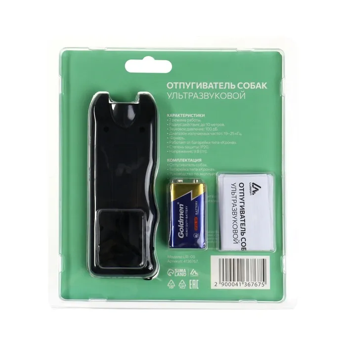 Отпугиватель собак Luazon LRI-09, ультразвуковой, питание от "Кроны" (в комплекте) — Характеристики