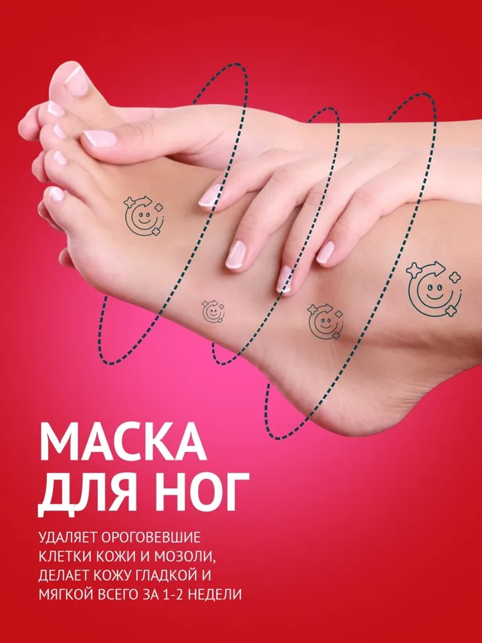 Маска для ног удаляет ороговевшие клетки кожи и мозоли, делает кожу гладкой и мягкой всего за 1-2 недели!