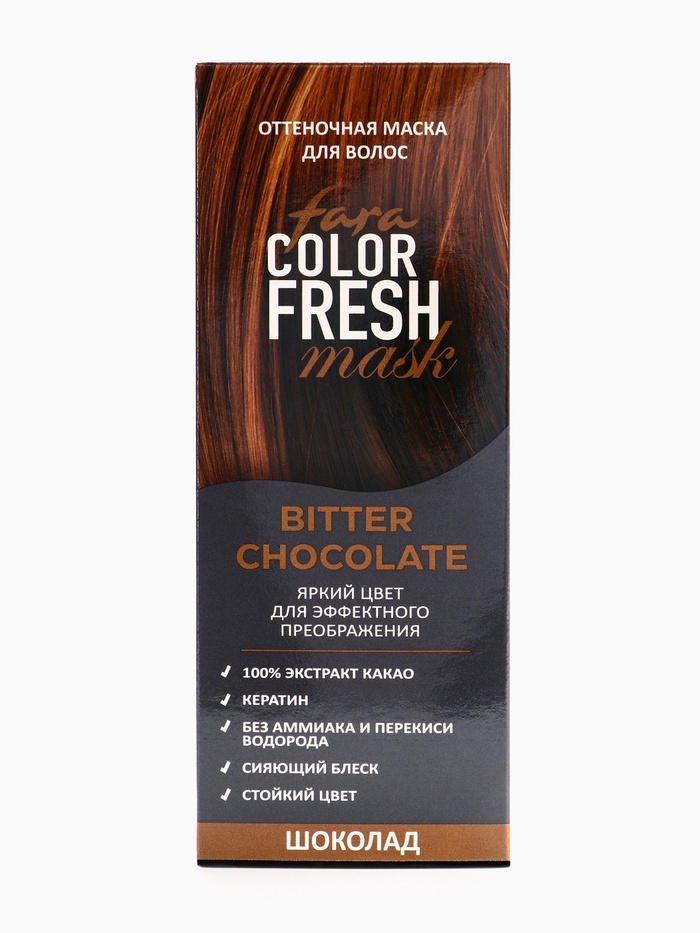 Оттеночная маска для волос FARA Color Fresh "Bitter Chocolate" — это насыщенный шоколадный оттенок и глубокий уход в одном флаконе. Маска бережно обновляет цвет волос, придавая им роскошный тёмно-шоколадный блеск с мягкими теплым нотками, которые делают образ более выразительным и загадочным.