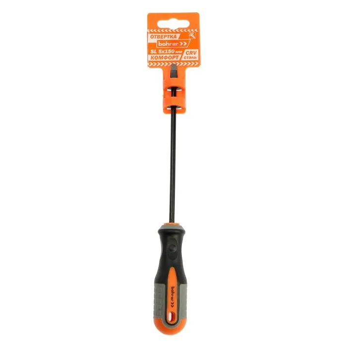 Отвертка Bohrer Комфорт, 42 135 150, с магнитом, сталь CrV, 3К рукоятка, SL5 х 150 мм — Характеристики