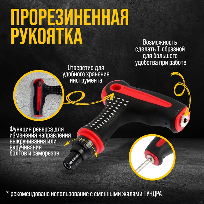 Отвертка-держатель ТУНДРА, Т-образная двухкомпонентная рукоятка, реверс — Характеристики