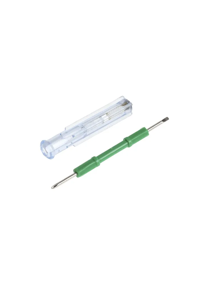 Отвертка оснащена пластиковой рукояткой, что позволяет надежно удерживать инструмент в руке во время работы.