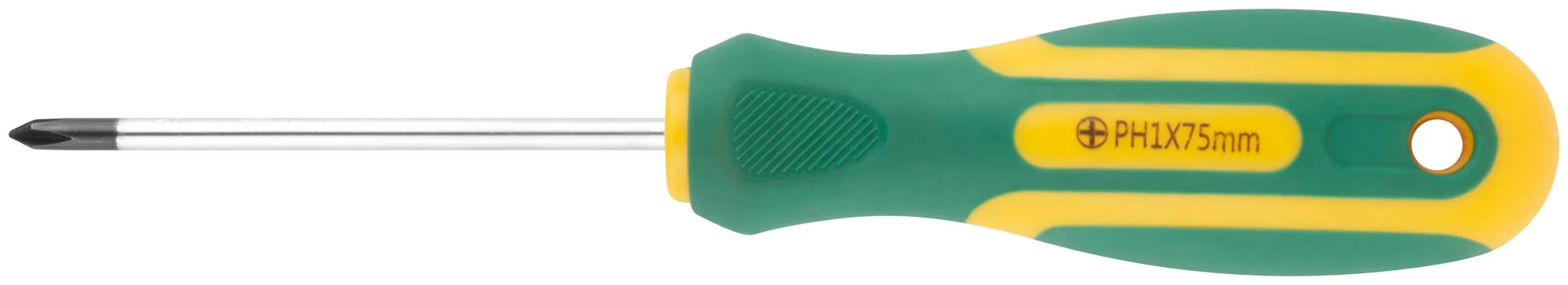 Отвертка изготовлена из хром-ванадиевой стали, что обеспечивает высокую прочность и долговечность инструмента. Прорезиненная ручка обеспечивает комфортный и надежный захват, предотвращая скольжение даже при длительном использовании.