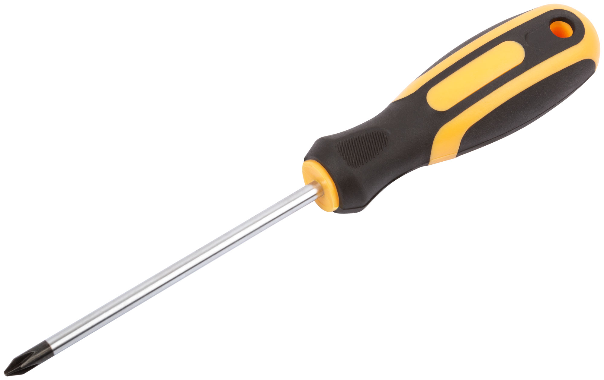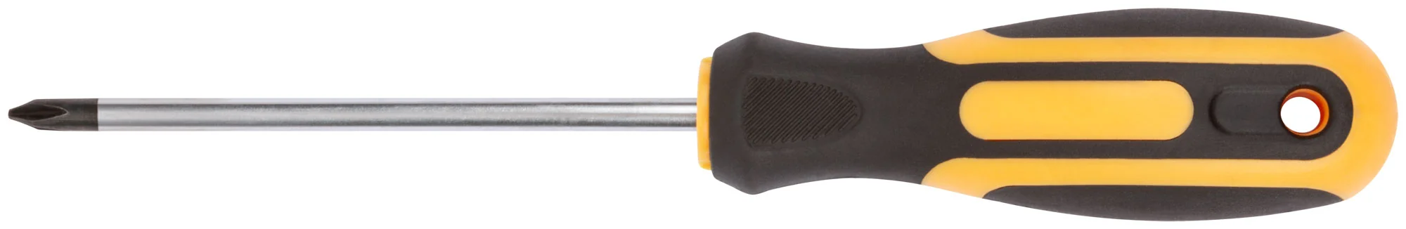Изготовленная из прочной хром-ванадиевой стали, отвертка отличается высокой износостойкостью и долговечностью. Прорезиненная пластиковая ручка обеспечивает удобный и надежный захват, что минимизирует риск скольжения во время работы.