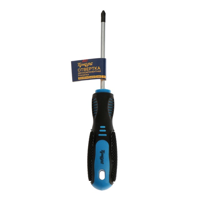 Отвертка крестовая ТУНДРА, CrV, хром, магнит, двухкомпонентная рукоятка, PH2×100 мм — Характеристики