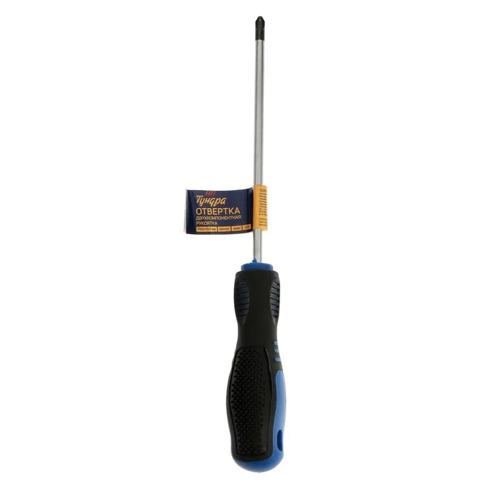 Отвертка крестовая ТУНДРА, CrV, хром, магнит, двухкомпонентная рукоятка, PH2×150 мм — Характеристики