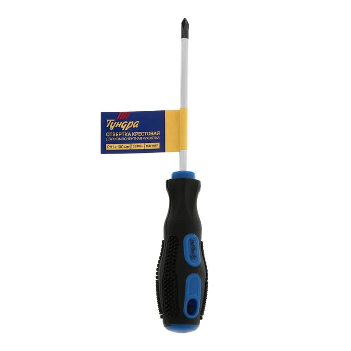 Отвертка крестовая ТУНДРА, сатин, магнит, двухкомпонентная рукоятка, PH1×100 мм — Характеристики