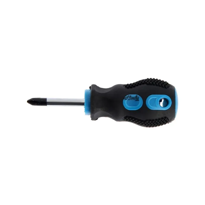 Отвёртка имеет намагниченный наконечник, который позволяет работать с крестовым шлицем в труднодоступных местах.
