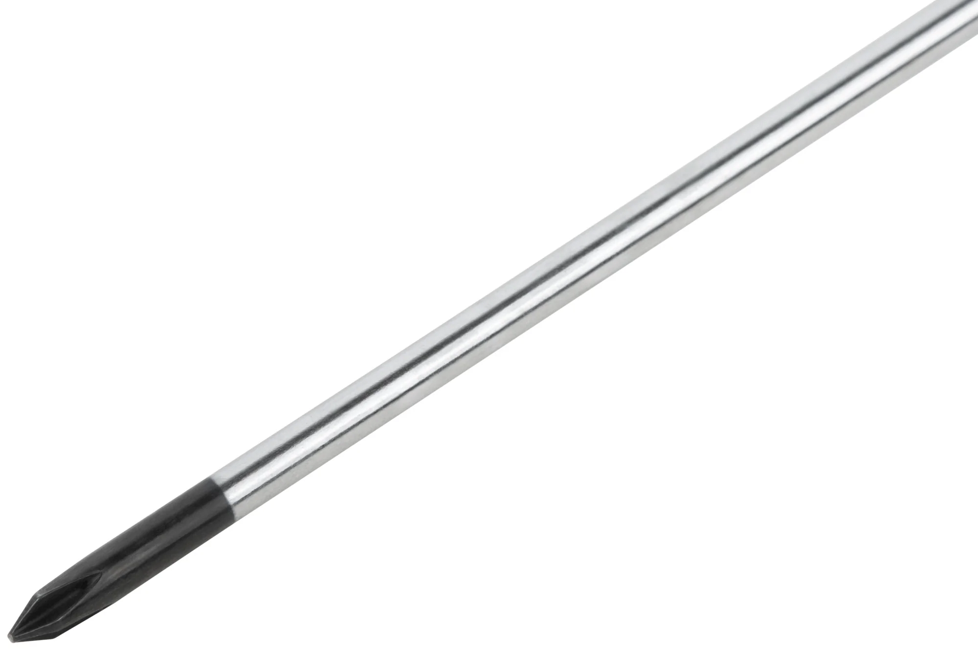 Изготовлена из прочной хром-ванадиевой стали (CrV), отвертка отличается долговечностью и устойчивостью к износу. Прорезиненная двухкомпонентная ручка обеспечивает удобный и надежный захват, что позволяет работать без усталости даже при длительном использовании.