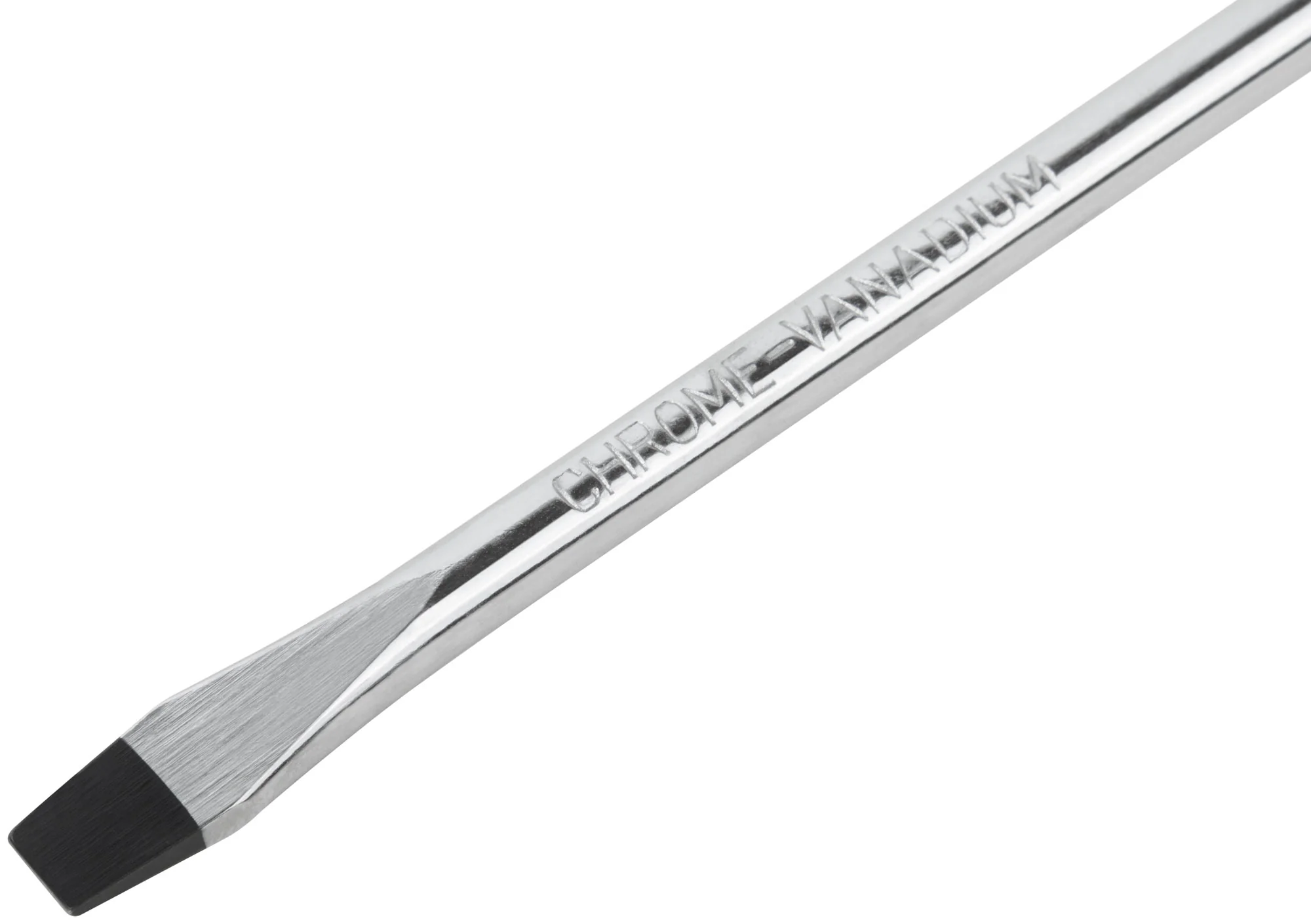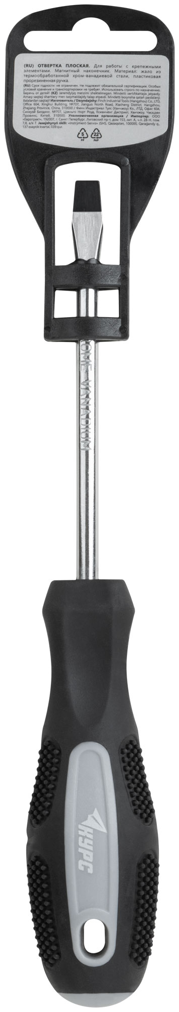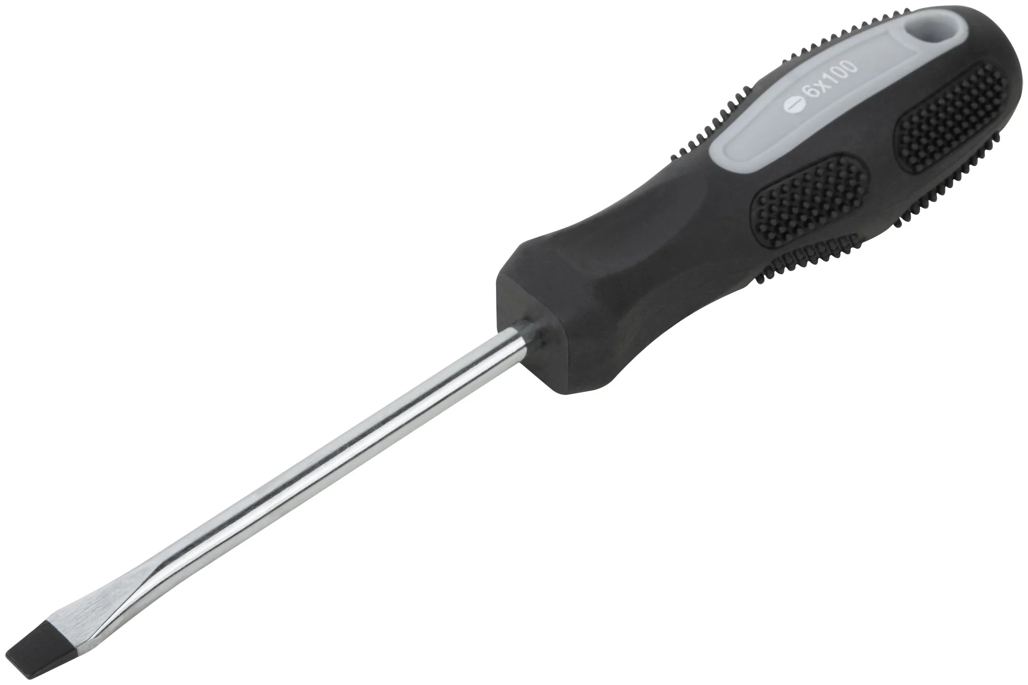 Эта отвертка идеально подходит для точного затягивания и откручивания шлицевых винтов. Она станет незаменимой в вашем наборе инструментов при выполнении ремонтных и монтажных работ. Специальная прорезиненная ручка обеспечивает уверенное сцепление, даже при длительном использовании.