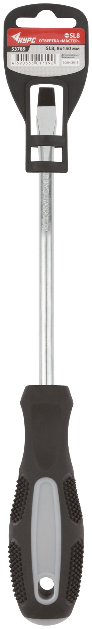 Выберите отвертку КУРС 8х150 мм SL с прорезиненной ручкой, чтобы обеспечить себе надежный и удобный инструмент для любых крепежных задач.