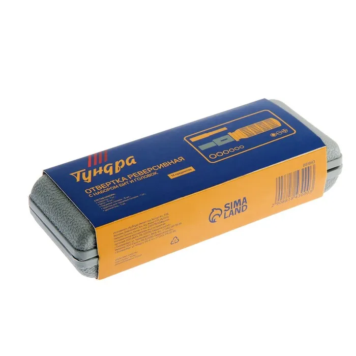 Отвертка с набором бит и головок ТУНДРА, реверсивная, в кейсе, 14 предметов — Характеристики