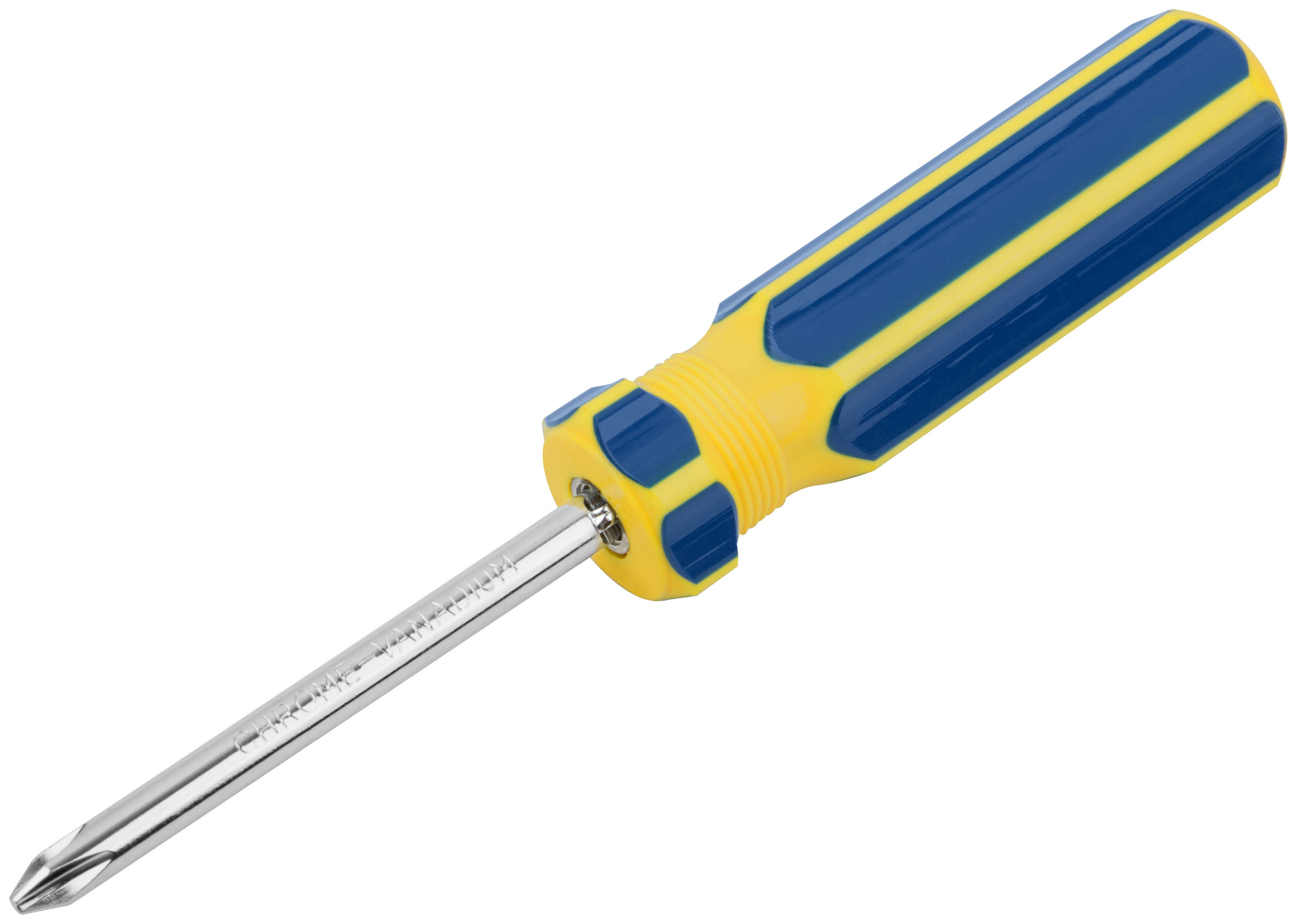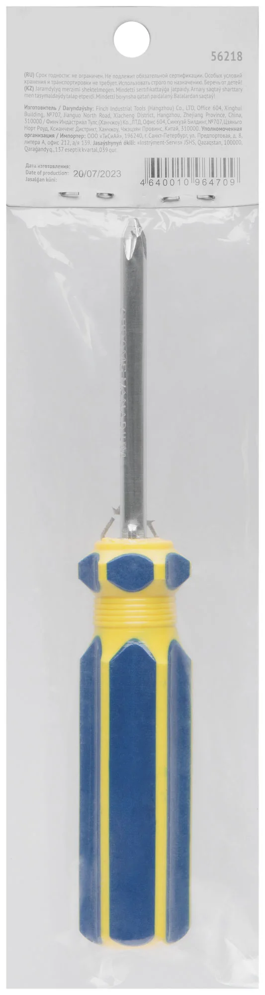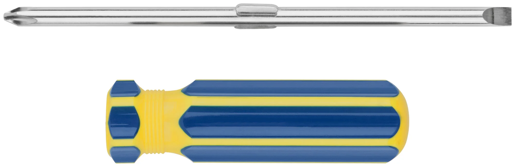 Инструмент изготовлен из хром-ванадиевой стали (CrV), что обеспечивает долгий срок службы и устойчивость к износу. Пластиковая сине-желтая ручка эргономичной формы обеспечивает комфортный и надежный хват, уменьшая усталость при длительной работе.