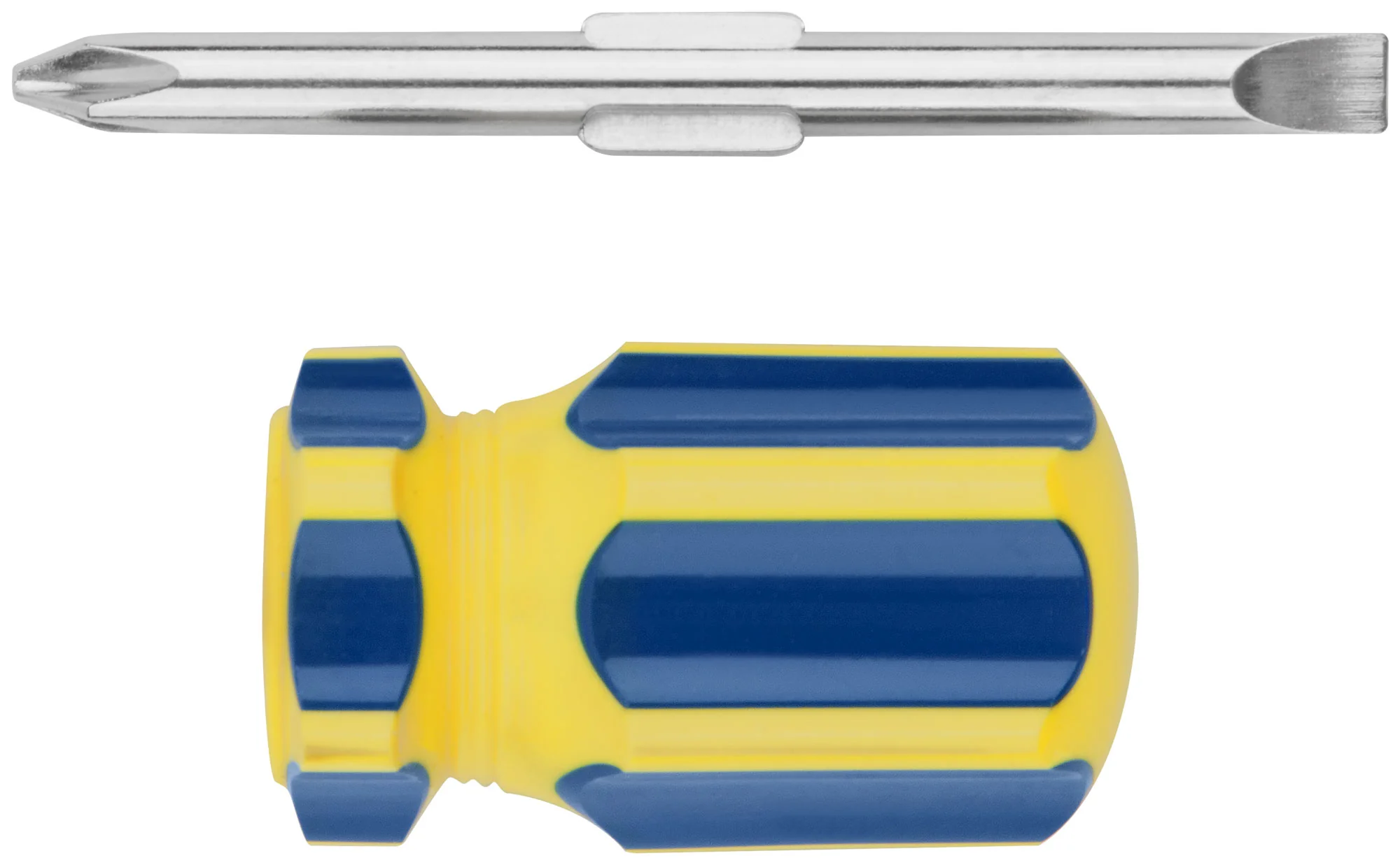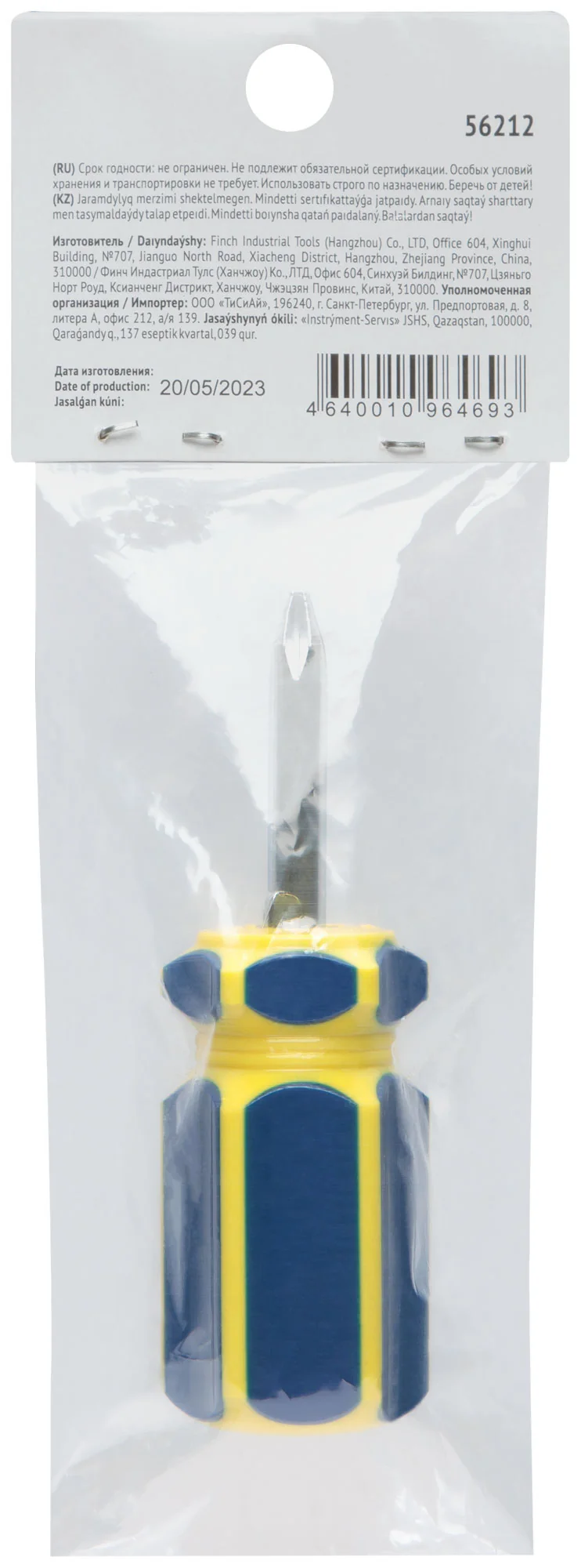 Отвертка оснащена жалом из хром-ванадиевой стали, что гарантирует долговечность и износостойкость, а сине-желтая пластиковая ручка обеспечивает удобный хват и комфорт при продолжительных работах.