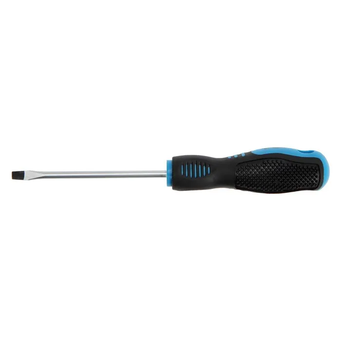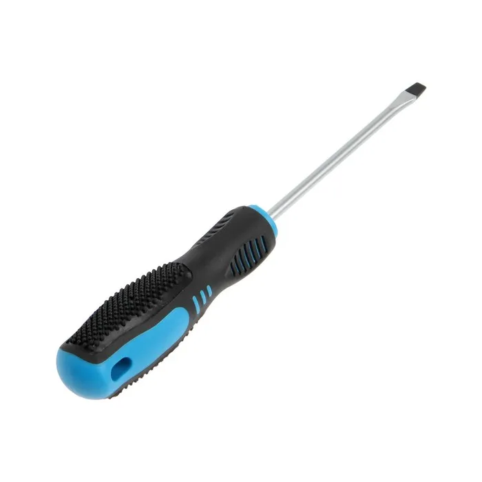 Материал отвёртки отличается высокой твёрдостью и износостойкостью, так как выполнена из высококачественной хромованадиевой стали. Двухкомпонентная рукоятка не выскальзывает из рук и не натирает ладони, что создаст комфортные условия во время работы и увеличивает крутящий момент.