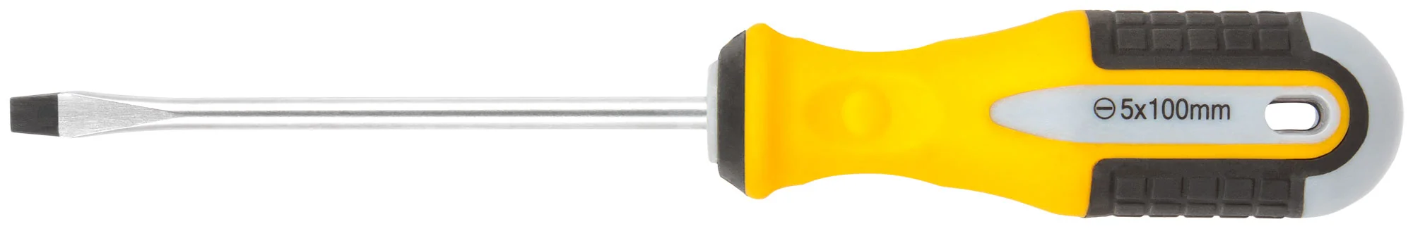 Эта отвертка станет вашим надежным помощником при работе с крепежом различного типа. Благодаря размеру 5х100 мм и плоскому наконечнику, она позволяет легко справляться с винтами в труднодоступных местах, обеспечивая точность и безопасность.