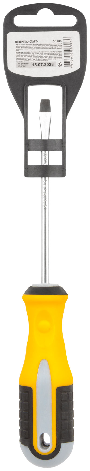 Жало отвертки изготовлено из высококачественной хром-ванадиевой стали, что гарантирует долговечность и устойчивость к износу. Прорезиненная пластиковая ручка обеспечивает надежный захват и комфортную работу без скольжения.