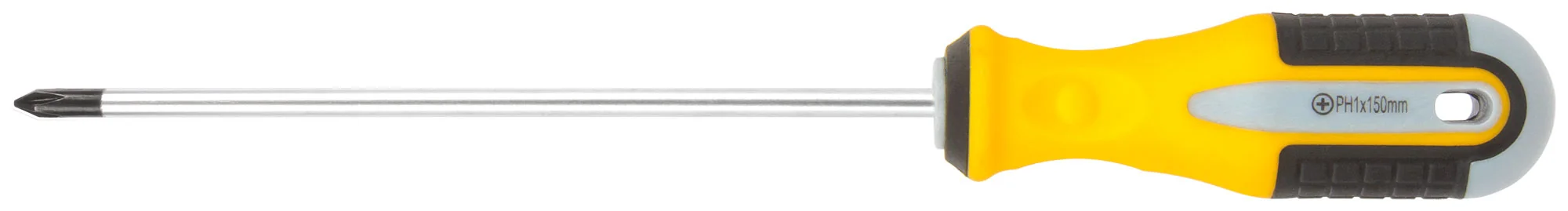 Жало отвертки изготовлено из хром-ванадиевой стали, что обеспечивает высокую прочность и долговечность. Магнитный наконечник позволяет легко захватывать и удерживать винты, предотвращая их падение. Прорезиненная трехцветная ручка обеспечивает удобный и надежный захват, снижая усталость при длительном использовании.