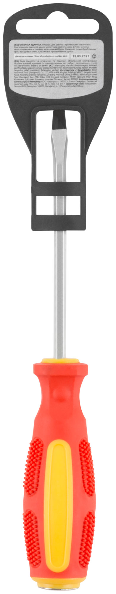 Отверткa ударная, CrV сталь, шестигранное сквозное жало с бойком, прорезиненная ручка 5х100 мм SL