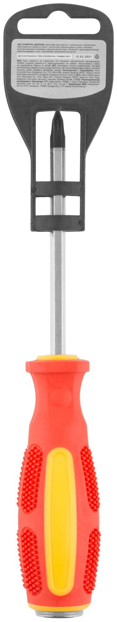 Ударная отвертка 6х100 мм PH2 с шестигранным сквозным жалом для надежного крепления
