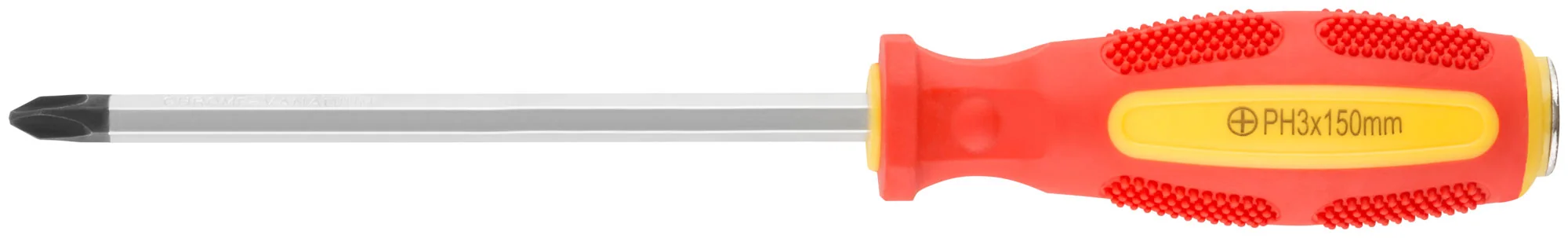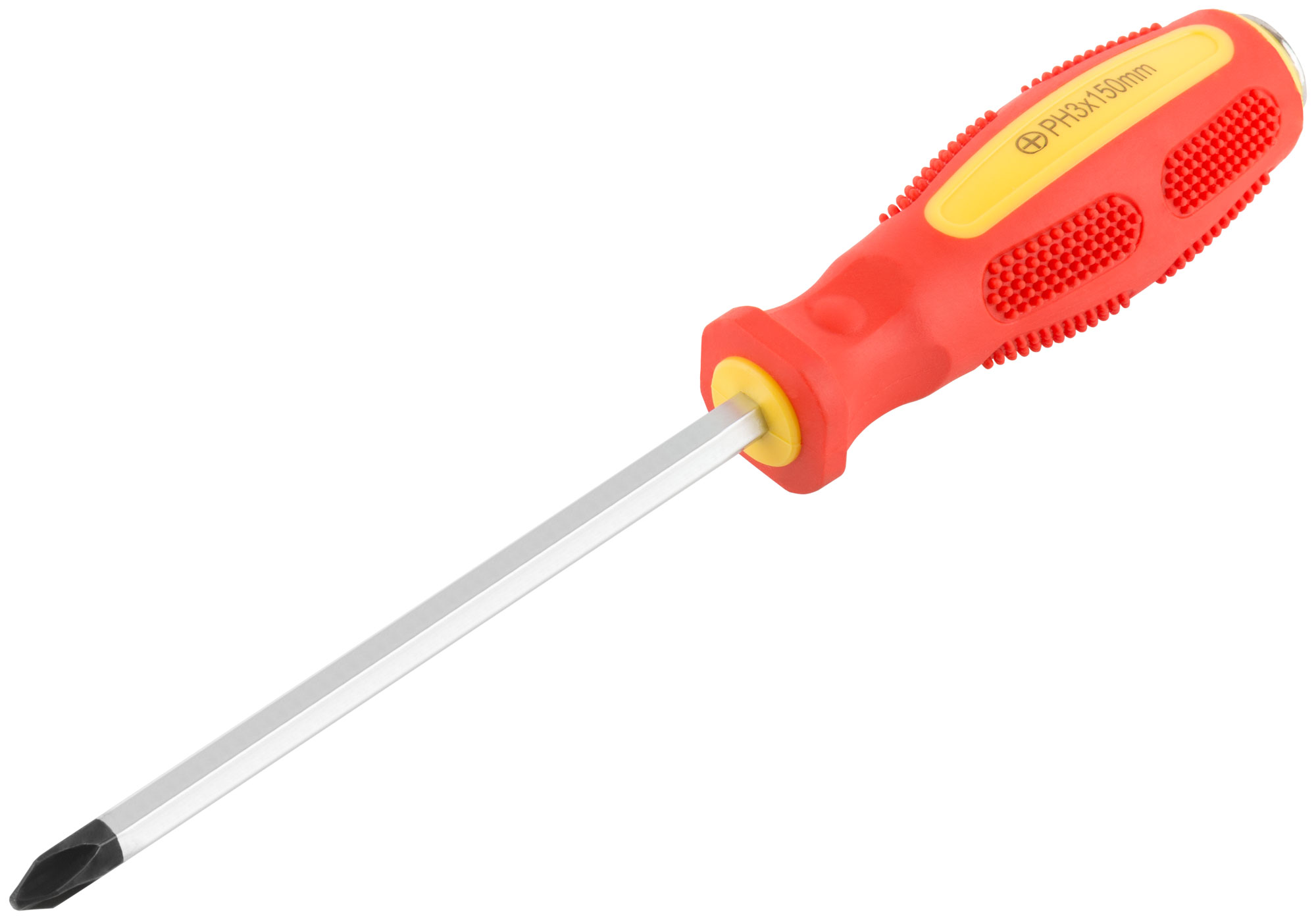 Отвертка оснащена шестигранным сквозным жалом из хром-ванадиевой стали, которое выдерживает значительные нагрузки и обеспечивает долговечность инструмента. Прорезиненная ручка обеспечивает надежный хват и снижает усталость при длительной работе.