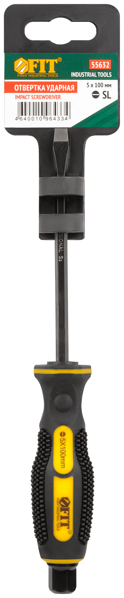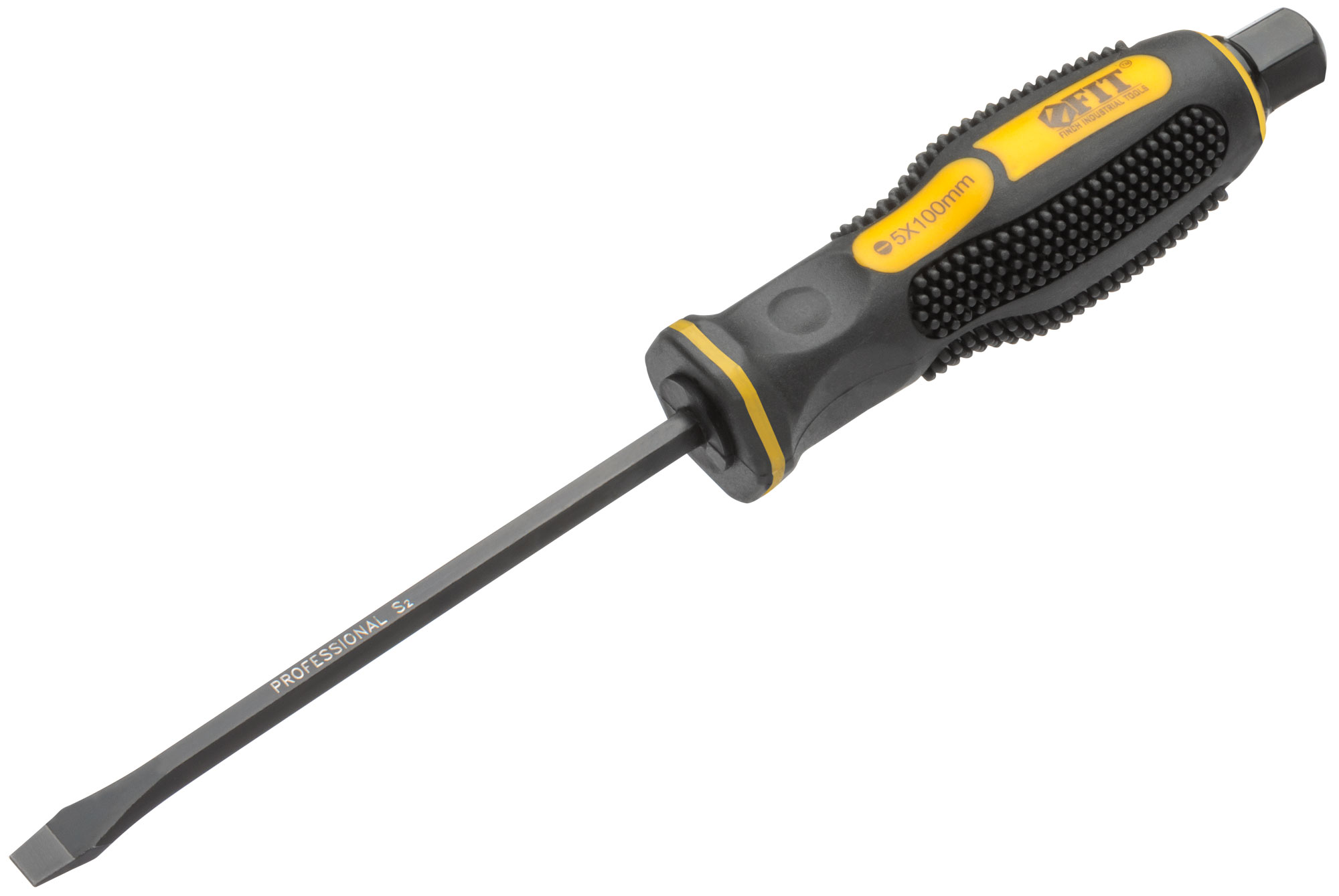Ударная отвертка 5х100 мм SL из стали S2 с прорезиненной ручкой