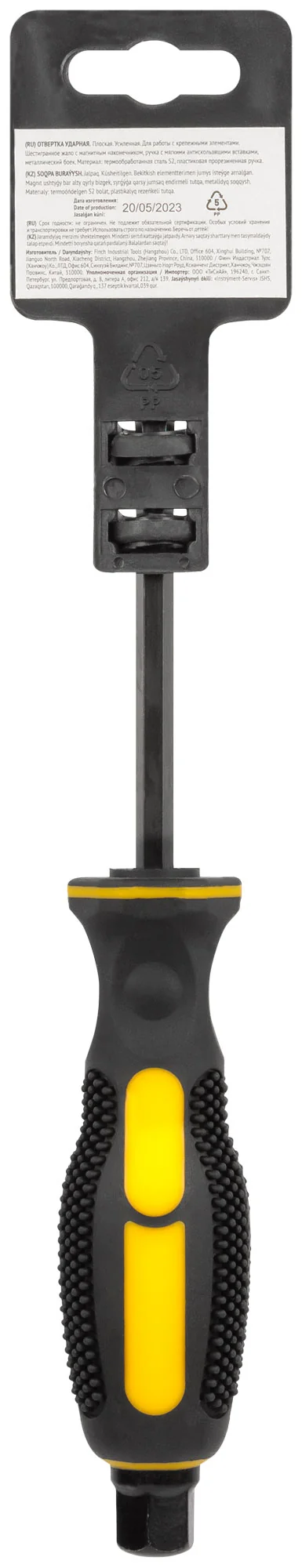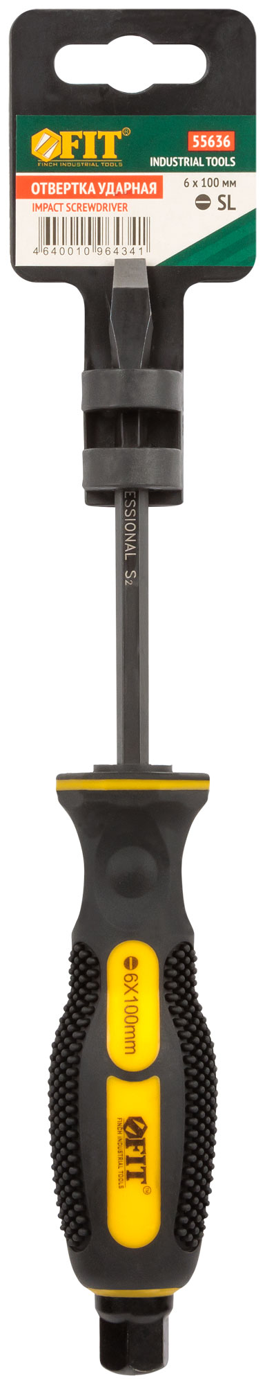 Ударная отвертка 6х100 мм SL с S2 сталью и прорезиненной ручкой