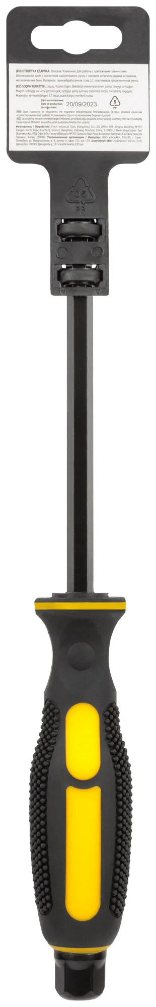 Прорезиненная ручка обеспечивает надежный хват и предотвращает скольжение, что особенно важно при работе в условиях повышенной влажности или с маслянистыми поверхностями. Удобный формат упаковки на подвесе облегчает хранение и транспортировку.