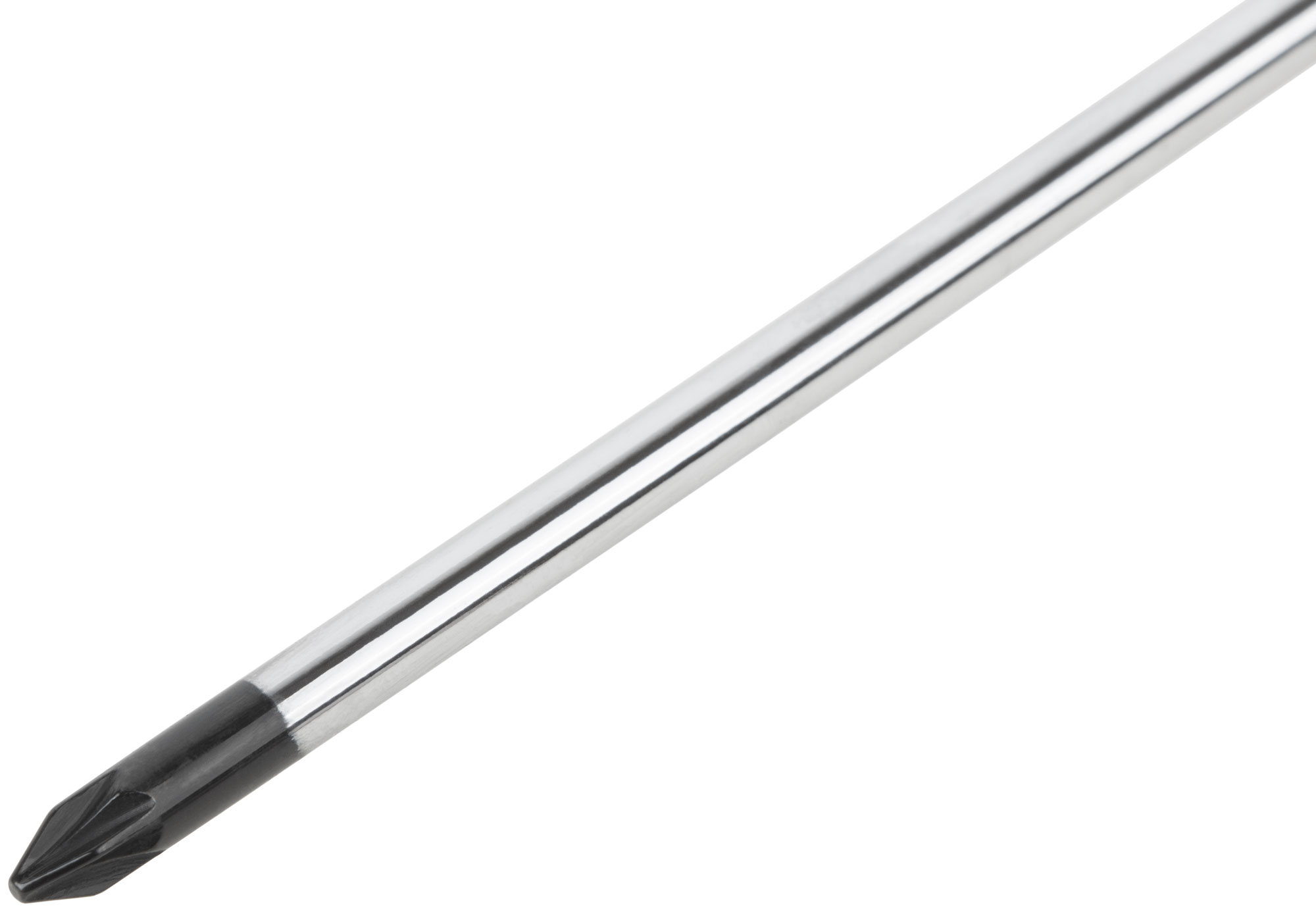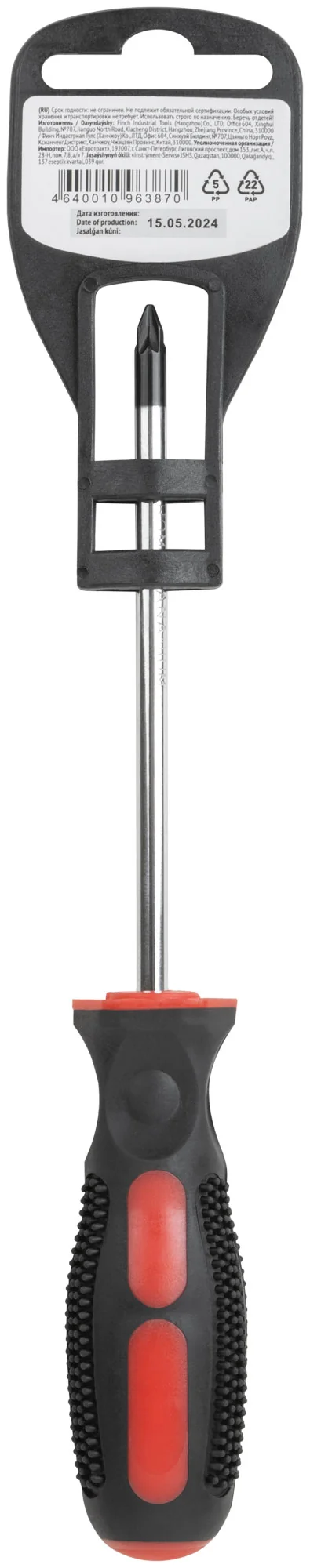 Жало отвертки изготовлено из прочной хром-ванадиевой стали, что гарантирует долговечность и устойчивость к износу. Магнитный наконечник обеспечивает надежную фиксацию крепежа, предотвращая его потерю в процессе работы. Прорезиненная ручка снижает усталость и обеспечивает комфортный хват.