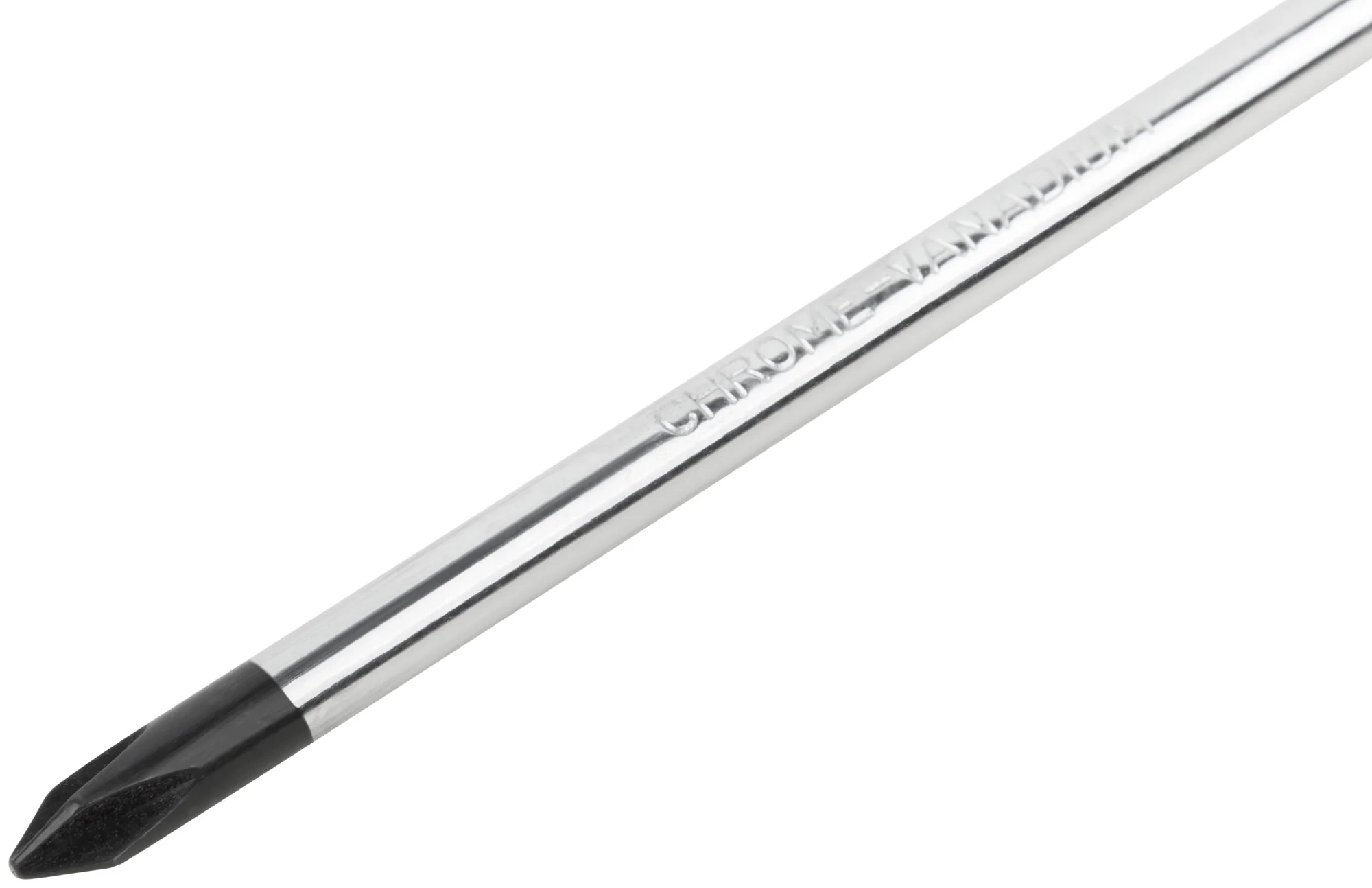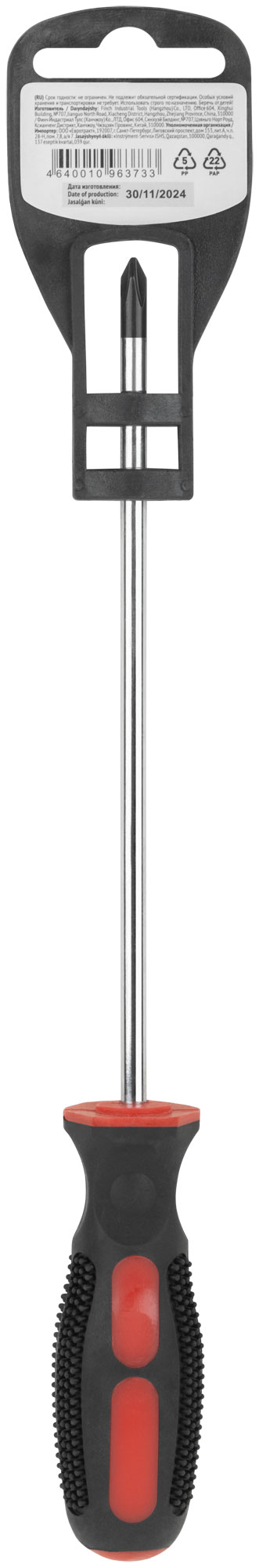 Инструмент изготовлен из прочной хром-ванадиевой стали, обеспечивающей долговечность и надежность. Магнитный наконечник позволяет удерживать винты, что значительно упрощает работу. Прорезиненная ручка обеспечивает удобный и надежный хват, снижая нагрузку на руку при длительном использовании.