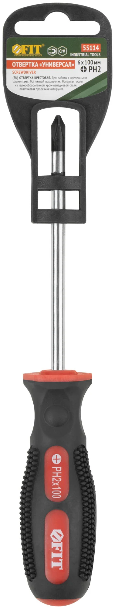 Отвертка 6х100 мм РН2 с прорезиненной ручкой для универсального использования
