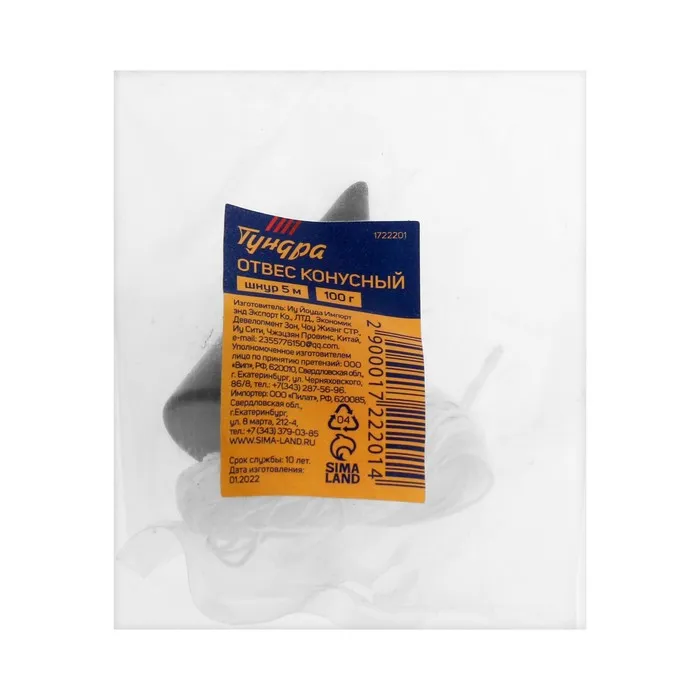 Отвес конусный ТУНДРА, шнур 5 метров, 100 г — Характеристики