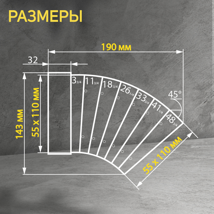 Отвод ZEIN, плоский, разноугловой, вентиляционный, 55×110 мм — Характеристики