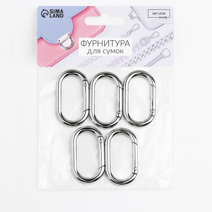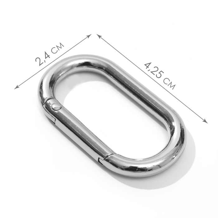 Овал-карабин, 42.5×24 мм / 34×16 мм, толщина - 4 мм, 5 шт., цвет серебряный — Характеристики